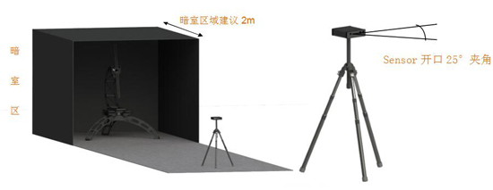 通常在進(jìn)行光測(cè)量時(shí),需要一個(gè)完全黑暗的房間。 但是對(duì)于LabSpion來說,整個(gè)房間并不是必須的,因?yàn)閭鞲衅魇褂昧艘粋€(gè)特殊的方向傳感器,這意味著只有測(cè)角儀區(qū)域黑暗就足夠了。如下右圖所示,光譜儀傳感器方向性(25°開口)非常強(qiáng),基本上只有燈具一側(cè)的背景墻壁的反光會(huì)影響測(cè)量。因此,LabSpion能做到只需要測(cè)角儀光源部分所在的區(qū)域是暗室就能完美的完成測(cè)量,暗室的墻壁可以刷黑漆,也可以用黑色的褶皺窗簾,這對(duì)于傳統(tǒng)分布式光度計(jì)是革命性的,客戶可以省去大筆建造暗室的費(fèi)用。