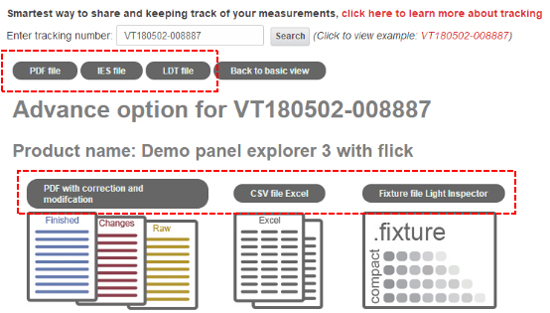 只需要在測(cè)試的時(shí)候,保持電腦聯(lián)網(wǎng),軟件中勾選追蹤功能,測(cè)試完成后就會(huì)生成一個(gè)追蹤編號(hào)(下圖搜索框中),通過編號(hào)即可到Viso官網(wǎng)查詢?cè)紨?shù)據(jù)和修正數(shù)據(jù)。點(diǎn)擊圖中紅色虛線框中的深灰色按鈕,即可下載相應(yīng)的文件。