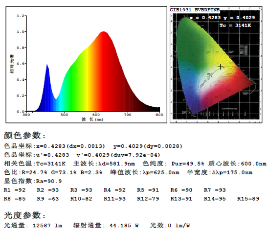 | 項(xiàng)目 | 光通量/lm | 色溫/K | 顯指 | x | y |