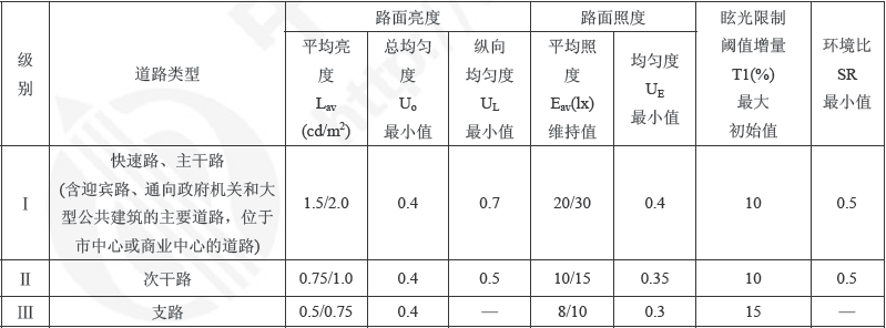 在《城市道路照明設計標準》-CJJ 45-2006的規范中,表3.3.1明確規定快速、主干路,次干路,支路等,眩光限制閾值增量TI(%)的*大初始值。