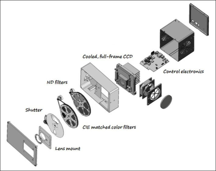 成像亮度采用CCD(Charge-Coupled-Device, 電荷耦合元件)作為探測器,以及標定的專用鏡頭來實現模擬人眼的視場感知得到亮度的分布。