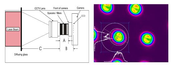 激光光束測量儀,主要測量模組經過DOE分束之后的多光束的光斑大小均勻性、能量分布均勻性。可以得到光斑的尺寸大小、能量分布、2D、3D圖、可輸出多種格式的測量報告