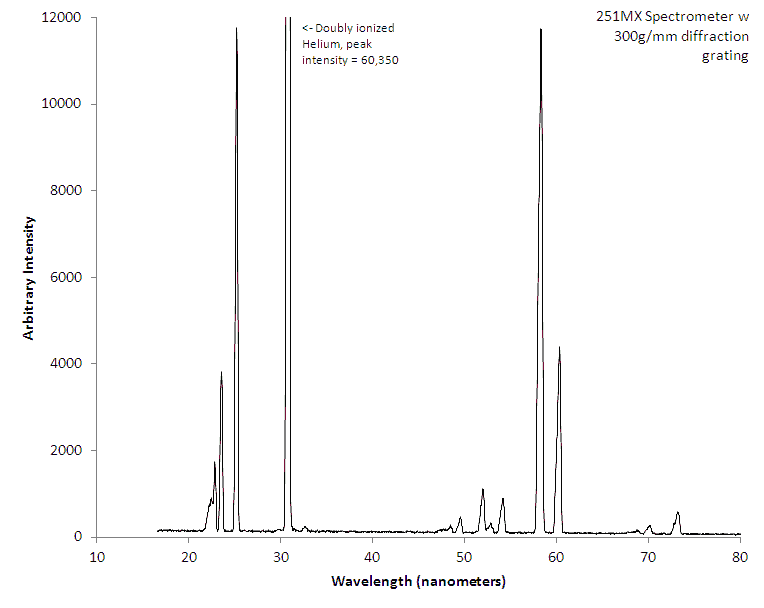 注:MgO光譜是用251MX型號(hào)配置CCD探測(cè)的;300g/mm光柵用于氦和氫數(shù)據(jù);MgO和Al-K數(shù)據(jù)使用2400g/mm光柵;其余為1200g/mm像差校正的平場(chǎng)光柵;光源為McPherson無(wú)窗空心陰極燈和軟X射線(xiàn)(SXR)固態(tài)陽(yáng)極源。