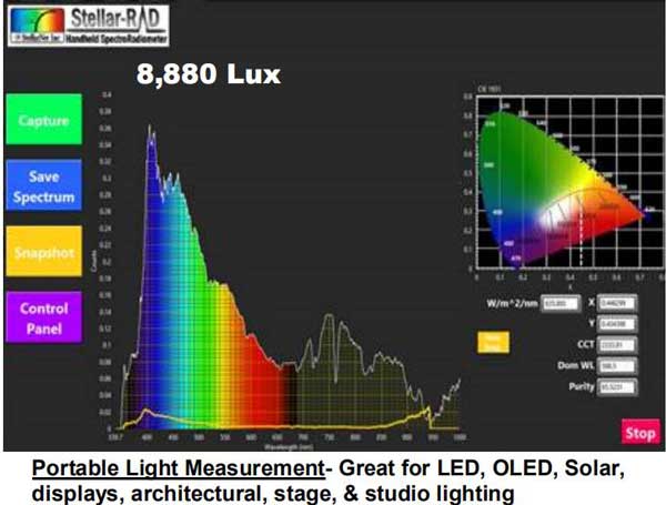 StellarNet發布了一款能夠提供全新解決方案的便攜式測光的設備。StellarNet Stellar-RAD SpectroRadiometer是一款研究等級的光譜儀,無需額外的設備,簡單操作即可用于光測量。這款溯源于NIST的系統可用于測量光譜輻照度和照度,相關色溫(CCT),xy色度,PAR等。