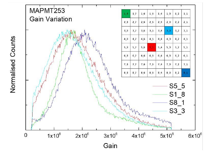 圖2. MAPMT253的電子增益均勻性。