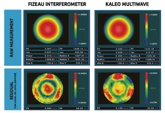Fizeau 干涉儀(左)與Kaleo-MTF(右)測試鏡片結果比較