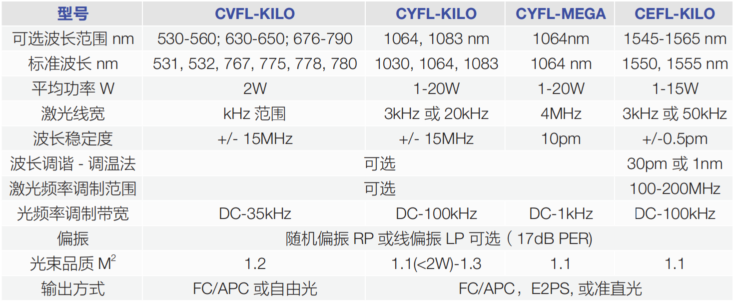 KILO MEGA 系列連續波窄線寬光纖激光器 :
