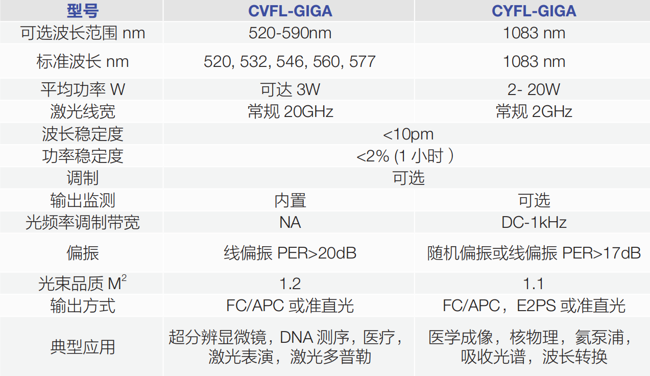 法國 Keopsys 公司的 GIGA 系列的高穩(wěn)定性光纖激光器標(biāo)準(zhǔn)提供 GHz 級別的常規(guī)激光線寬,在 520-590nm 綠光波段可提供 3W, 在 1083nm 近紅外波段可提供 20W 的功率輸出。應(yīng)用于超分辨顯微鏡,醫(yī)學(xué)影像等領(lǐng)域