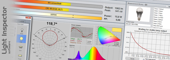 光通量,峰值強度,色溫,顯色指數,光束角, 光強分布曲線(配光曲線),功率,功率因子,流明/瓦(光效)