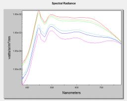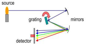 代替濾光片收集顏色數據,光譜輻射計將輸入信號分解成每波長的光譜,非常像棱鏡將陽光轉換成彩虹,然后多個探測器測量衍射光譜中的每種顏色。 該“原始數據”變換成光譜輻射度值,例如w / sr / m2。根據校正后的光譜值,進行CIE顏色計算。