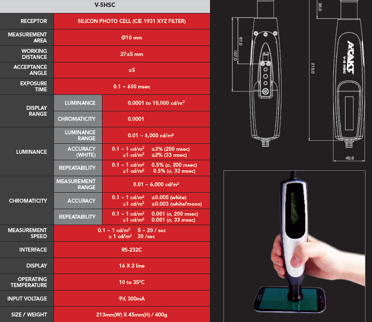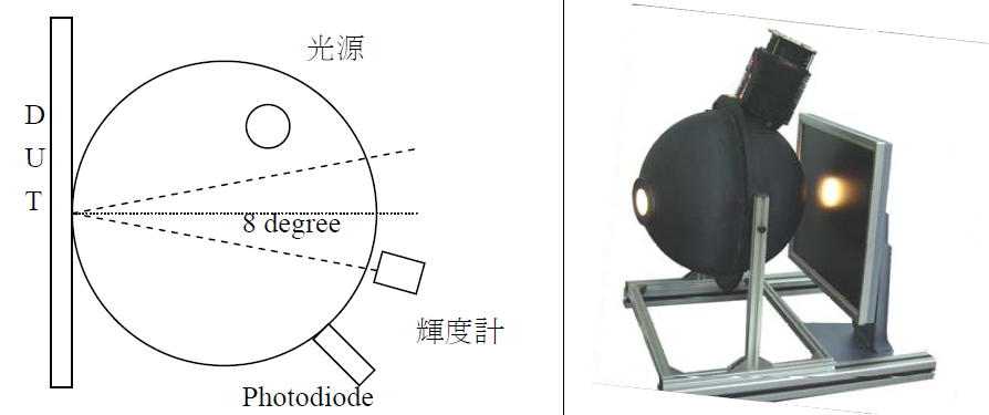 主要包括:均勻的標(biāo)準(zhǔn)A光源,直接及漫反射的光強度控制;高精度的亮度計;符合VESA,NIST,MIL,ISO等標(biāo)準(zhǔn)的機械制具;控制、分析軟件。
