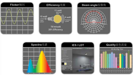 隨著LED在商用照明中的廣泛應(yīng)用,針對(duì)LED照明燈具的相關(guān)測(cè)試標(biāo)準(zhǔn)也日臻完善。由北美照明學(xué)會(huì)(IES)發(fā)布的LM-79指出了LED產(chǎn)品的測(cè)試方法和內(nèi)容,測(cè)試的內(nèi)容就包含光源的顏色參數(shù)(CRI等),光通量,光效,光強(qiáng)分布,色度以及功率,電壓,電流,功率因數(shù)。由CIE發(fā)布的S:025標(biāo)準(zhǔn),也規(guī)定了LED燈具或模塊的電參數(shù),光度,色度測(cè)試要求。其中就包含LED燈具的總光通量,光效,部分光通量,光強(qiáng)分布,中心光強(qiáng),亮度,亮度分布,色坐標(biāo),色溫,顯色品質(zhì)。