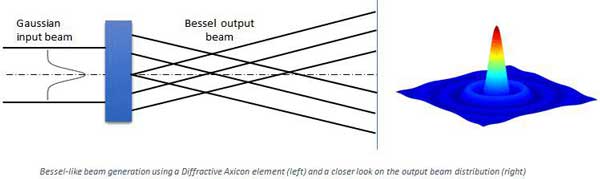 典型的應(yīng)用包括成像,以及在非線性過程中提升焦深。可通過衍射DOE來構(gòu)建貝塞爾光束。