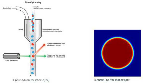 圖6.8 流式細(xì)胞術(shù)示意圖(左);圓形平頂光斑(右)