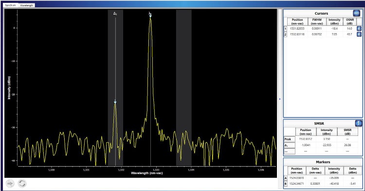3. 監控信道光譜特性:波長,帶寬,最大邊模抑制比等