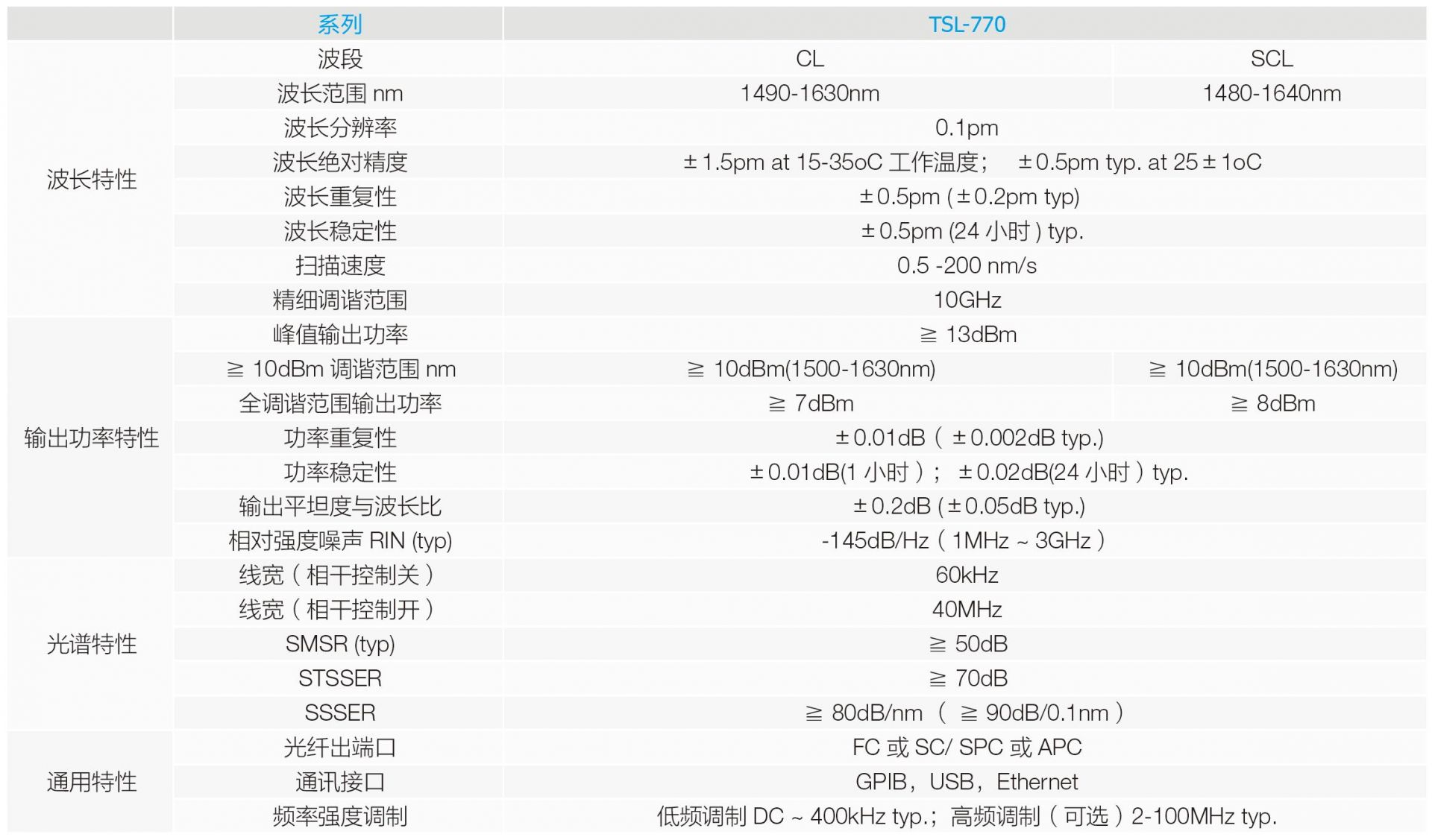 -TSL770系列旗艦款:針對CL和SCL波段更高性能,可連續掃頻