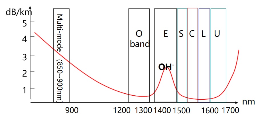 光通訊波段的光纖傳導損耗率