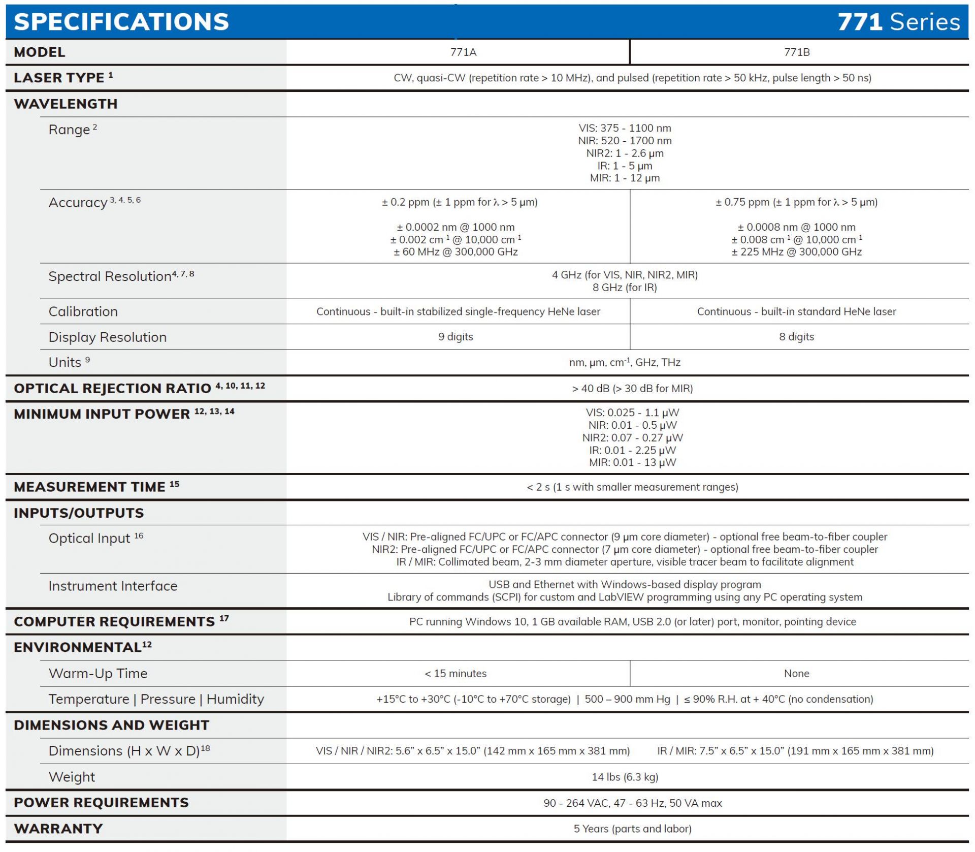高精度光頻譜儀 -771 系列