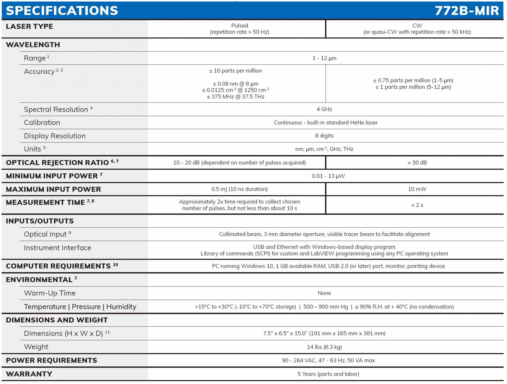 772B-MIR 激光光譜分析儀將成熟的邁克爾遜干涉儀技術(shù)與快速傅里葉變換分析相結(jié)合,可以測(cè)量 1 至 12μm 范圍內(nèi)的連續(xù)激光和脈沖激光的光譜特性。772B-MIR 系統(tǒng)的獨(dú)特之處在于它可以測(cè)量重復(fù)頻率低至50Hz 的脈沖激光。