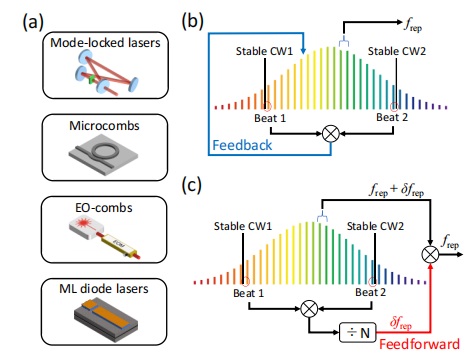 圖二:a. 鎖模飛秒激光,微諧振腔光梳,電光調制光梳,鎖模半導體激光均可利用PDH鎖定;