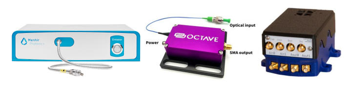 而在架構穩定工作光頻梳后,利用帶寬足夠高的快速光電探測器將其激光重復頻率分量轉化為電信號引出來就是個超低相位噪聲,超低時間抖動的微波頻率信號。
