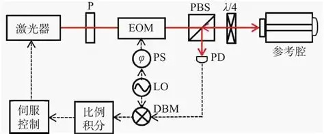待進一步穩定的激光器,電光調制器EOM,光學參考腔Cavity,光電探測器(PD)、濾波器與射頻解調電子設備(大致就是我們常見的PID比例積分反饋控制器)。
