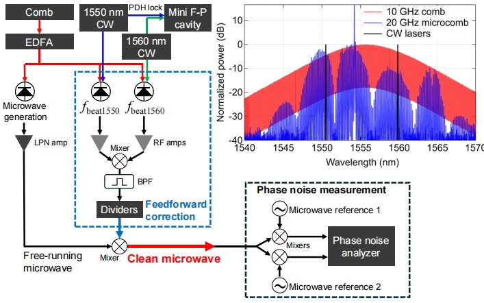 2.另外一種方式就是利用PDH Feedforward前饋技術穩定光頻梳后輸出超穩微波信號。