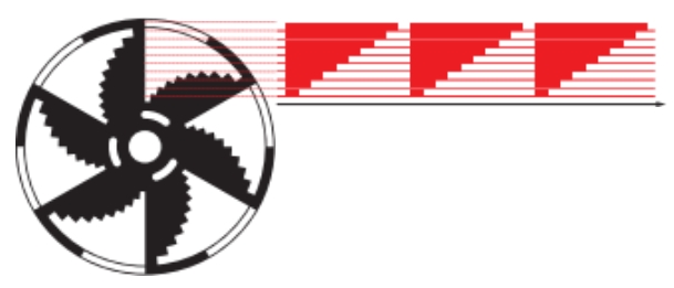 - 將兩個50%占空比的斬波片層疊安裝在同一個電機上,通過調(diào)節(jié)葉片相對的位錯實現(xiàn)調(diào)節(jié)占空比