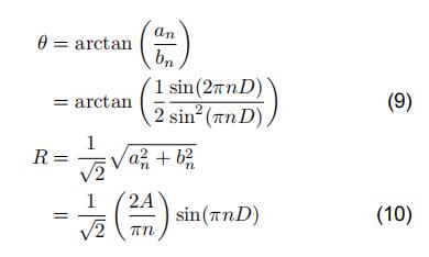 使用an和bn,我們可以計算一個已給定的諧波、占空比以及峰峰值的信號對應的振幅和相位(鎖相放大器的R和θ輸出)