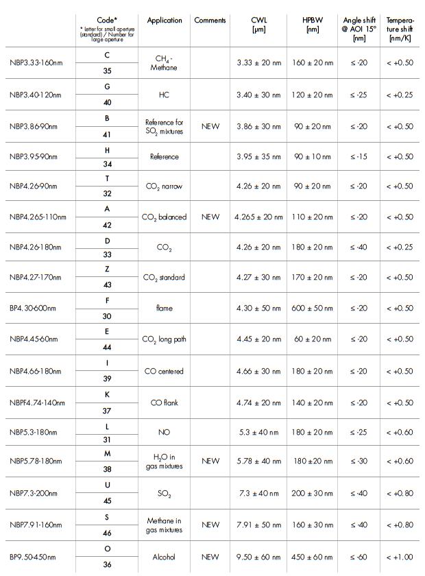 濾光片的選擇遵循被測物體及背景環境條件來確認,使用幾個通道的探測器,每個通道選用哪種濾光片可以參考以下的表格: