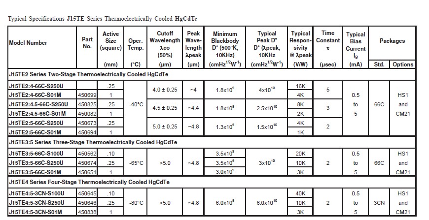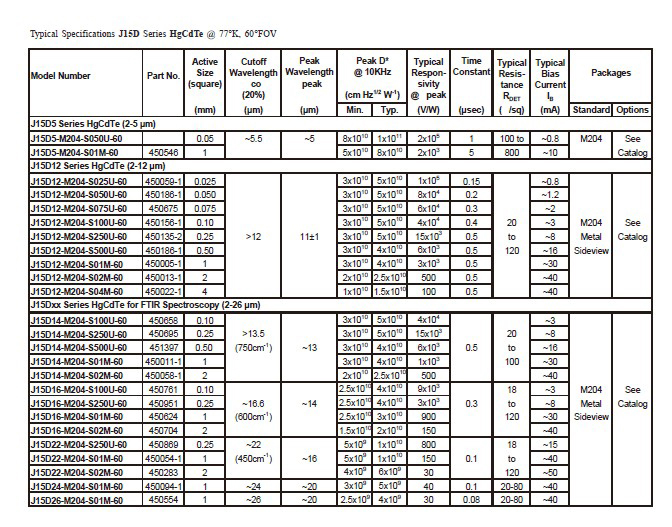 針對于FTIR特點,美國JUDSON公司的MCT探測器,具備靈敏度高,信噪比好等性能優點,涵蓋2-22um的寬光譜范圍,從而能夠有效凸顯FTIR性能特點,進一步提升FTIR的性能優勢。該系列產品有兩種制冷方式可供選擇,TE制冷與液氮制冷,既可以滿足用戶對高性能的追求,又能夠提升探測器使用的方便性。