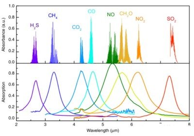 基于可調諧半導體激光吸收光譜技術(TDLAS)原理,每種氣體分子都會吸收特定波長的光。當一束激光穿過氣團后,輸出光將會減弱或者損失部分能量。在光譜學上通過分析某種氣體特定吸收譜線對光的吸收程度,計算出該氣體的濃度。這種吸收不受溫度濕度壓力等環境影響,因而具有高度的穩定性,可用于甲烷(CH4)、乙烯(C2H4)、一氧化碳(CO)、氨氣(NH3)等氣體探測。