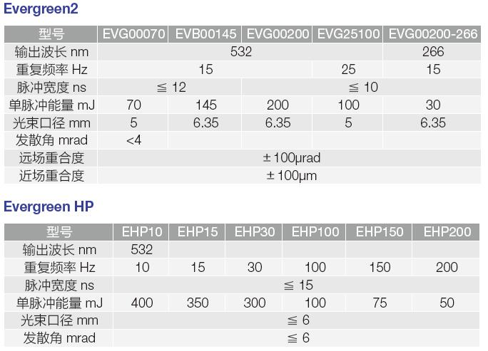EverGreen雙脈沖納秒脈沖激光器選型表
