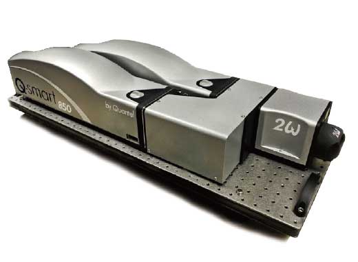 QSmart TWINS 為兩臺QS850 經過偏振合束構成雙脈沖共線輸出。兩臺激光器共用倍頻模塊,故可通過切換/ 拔插倍頻模塊獲取不同的波長。