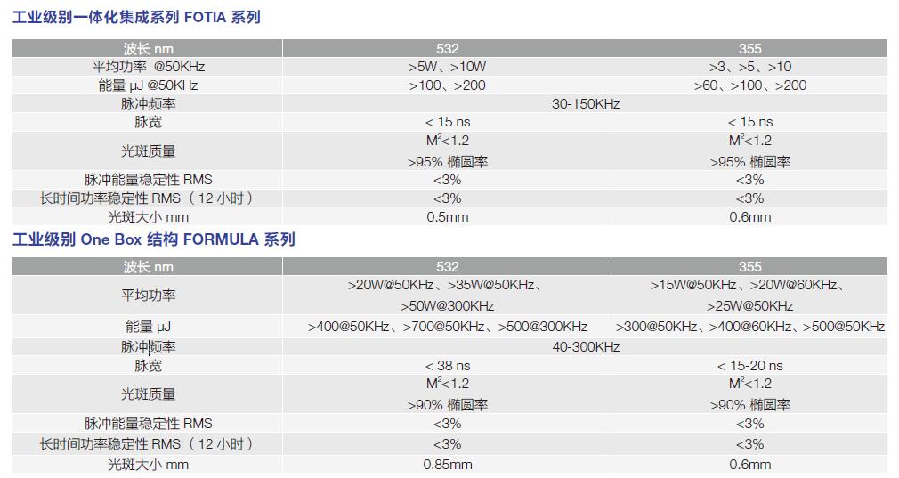 | 能量 μJ @10KHz | 300、600、1500 | 200-2000 | 100-800 | 50-400 |