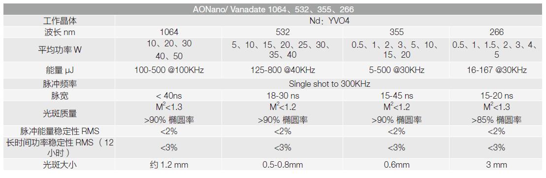 高重頻脈沖固體激光器AONano主要參數: