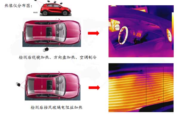轎車整車熱像檢測方案用于轎車整車下線時的檢測,能夠快速準確的檢測各加熱、制冷部件是否工作正常,提高整車的質量水平。