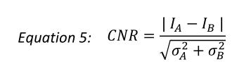 圖11通過方程5分析測量了不同厚度情況下的透過噪聲曲線。 通過圖11可以得出1.0cm與1.1cm厚度鋁材料之間得CNR值是2.6。相同厚度的銅材料CNR是11.4。假定CNR=1的情況是最小可以檢測的分辨率對比度,我們發(fā)現(xiàn)對于鋁的可探測的最小對比度是0.26%,銅是0.3%,表明圖像中的灰階值應(yīng)該是350。這個值同時也取決于中子束特性、樣品的成分以及幾何結(jié)構(gòu)。