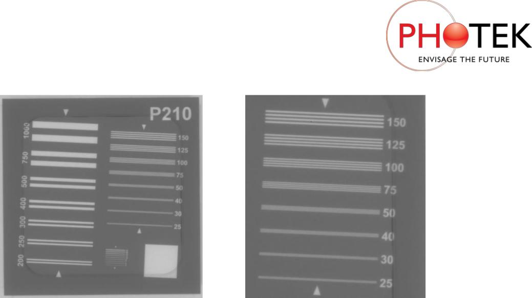 為了標定中子相機系統(tǒng)的空間分辨率,我們從the Paul Scherrer Institute (PSI)實驗中心取得一組分辨率標定圖。PSI提供了三組不斷減小的線對組圖(200-1000um;25-150um;5-25um)以及用于模式傳輸函數(shù)MTF分析的3°的傾角盒。通過以上工具對75mm以及30mm視場進行了極限分辨率分析。