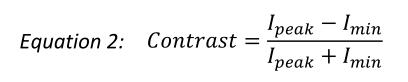 處理圖像后,在第一和第二組線對(25-1000um)成像中重現(xiàn)出多條線陣的輪廓。同時對于不同線對的尺寸用方程二進行對比度計算。計算圖像的MTF模式傳遞函數(shù)邊緣效應(yīng),使用了ImageJ軟件插件,針對邊緣ROI區(qū)域進行定義分析。