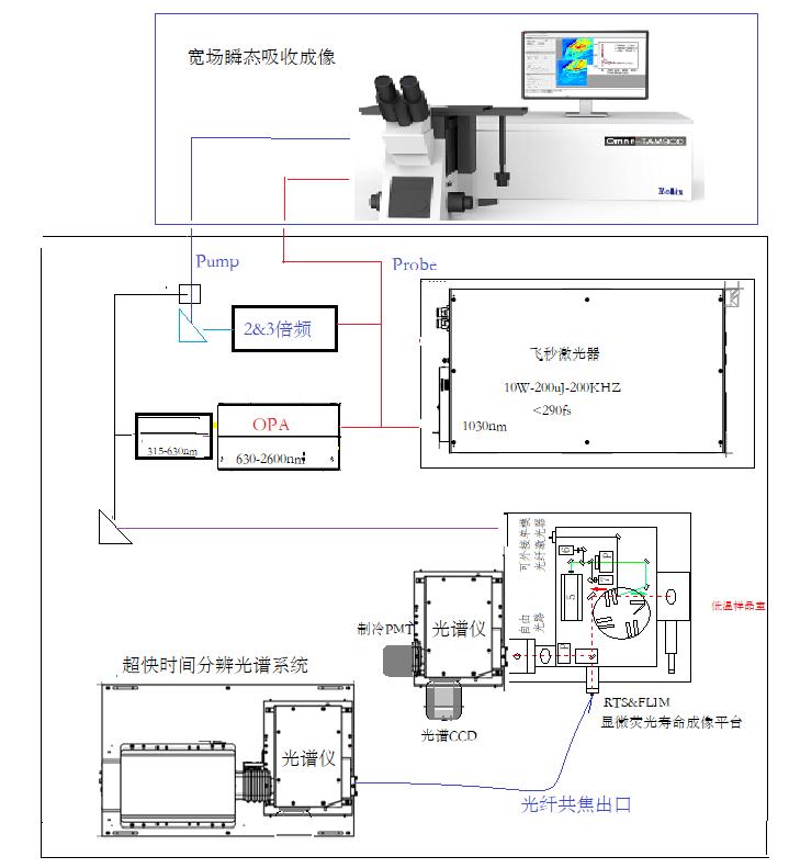 超快時間分辨光譜測試系統既可以與飛秒超快光源配合完成獨立的光譜測試,也可以與卓立漢光的其他系統比如 TCSPC, RTS&FLIM顯微熒光壽命成像系統,TAM900寬場瞬態吸收成像系統,以及低溫制冷室,飛秒&皮秒激光器等配合完成更為復雜全面的超快測試。