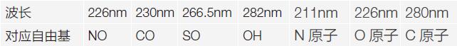 常用激發波長對應測試自由基及本設備對應激光能量