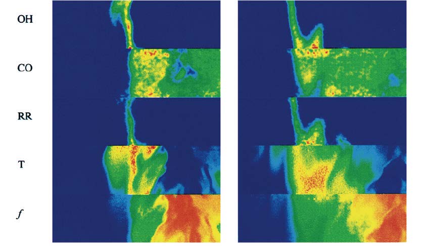 本公司代理ICCD 拍攝的PLIF 圖像OH LIF, CO LIF, reaction rate (RR), temperature (T),and mixturefraction (f)