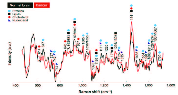 正常腦組織和腦腫瘤拉曼光譜的差異