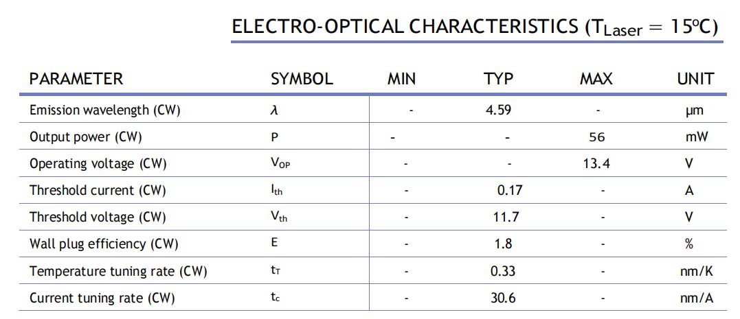 Eblana在2025年推出了基于DFB技術(shù)的QCL激光器。這款激光器可以工作在脈沖模式,也可以工作在連續(xù)模式。對于需要工作在中波紅外的氣體檢測應(yīng)用,這款QCL激光器就非常適合。