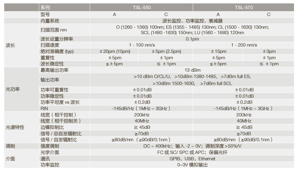 TSL系列連續(xù)掃頻激光器參數(shù)指標(biāo)