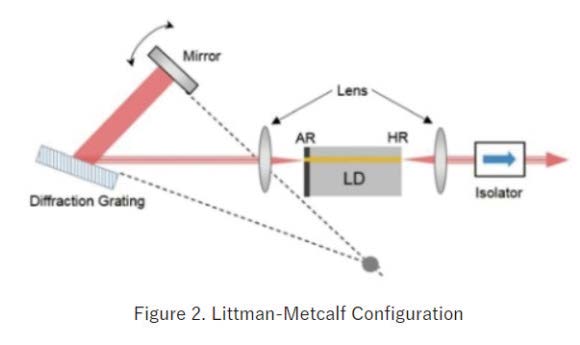 連續(xù)掃頻窄線寬激光器是Santec 公司的拳頭產(chǎn)品。采用Littrow 架構(gòu)的ECDL,可實(shí)現(xiàn)通訊波段單縱模<100kHz 線寬的輸出,13dBm 功率,無(wú)跳模掃頻范圍達(dá)到100nm,每秒可掃描200nm。