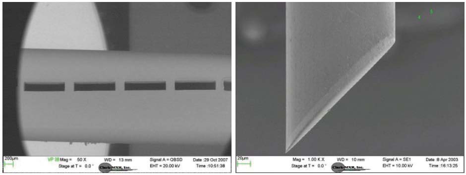 • 刻寫:支持多種材料體系的刻寫,包括晶體、金屬、難溶硬材料等。切口寬度可低至微米以下。
