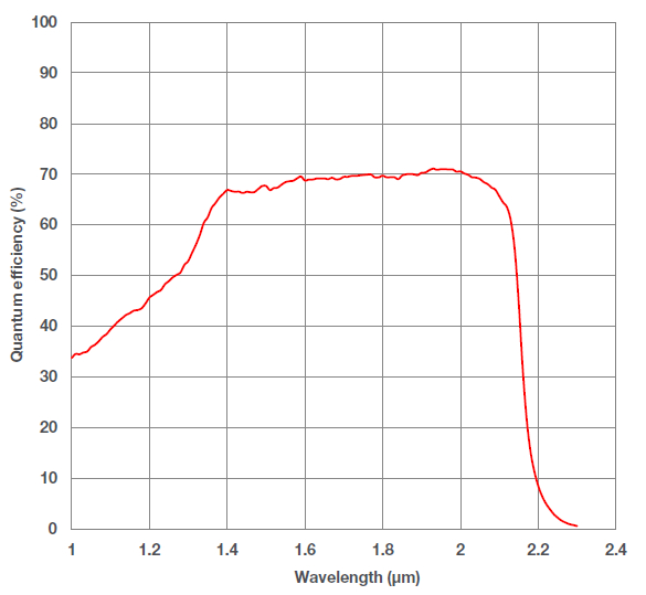 | 暗電流 | 600nm ~ 1700nm:11.7 ke- /pixel/sec 800nm ~ 2200nm: 5 Me- /pixel/sec |