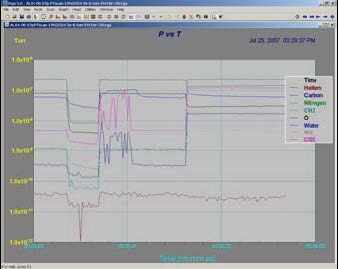 UGA系統自帶windows 軟件,實時采集數據和圖形化顯示,操作方便快捷。軟件功能中包含模擬的柱狀掃描模式、壓力和時間關系圖、檢漏測試、氣體分析和在線分析。標準的GPIB 和RS232 接口方便與計算機連接控制。